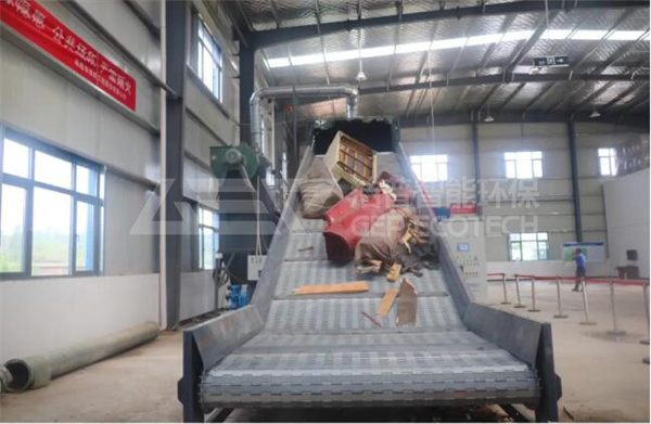 在處理中心現(xiàn)場,可以通過電腦顯示屏清晰地看到大件垃圾處理的全過程。一件件破舊沙發(fā)、椅子、床墊、柜子等大件物品通過鏈板輸送機(jī)進(jìn)入大件垃圾撕碎機(jī)里,經(jīng)過破碎、篩分工序,自動(dòng)分揀出金屬、木料、纖維類垃圾。其中無法利用的垃圾分類堆放,定期清理處置;分離出來的木料、海綿、布料等垃圾被送至焚燒廠經(jīng)過專門處理后用于發(fā)電。