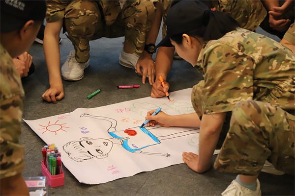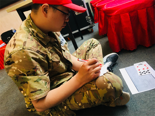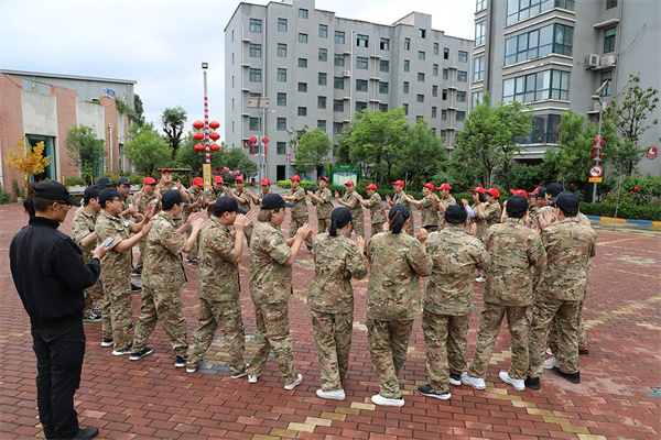十分鐘組建完成的紅牛隊(duì)和超越隊(duì)一點(diǎn)也不簡單。你聽,“紅牛紅牛,世界一流!”,“超越自我,勇往直前!”氣勢如虹,雄心昭顯;你看,紅黑雙色的帽子,就是我們與眾不同的標(biāo)志。平日簡單尋常的隊(duì)列訓(xùn)練,成了我們比拼的第一戰(zhàn)場,不想做俯臥撐的我們,斗志昂揚(yáng),全力以赴。