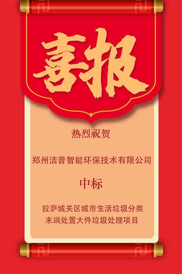 喜訊!潔普智能環(huán)保簽約西藏首個(gè)大件垃圾處置項(xiàng)目
