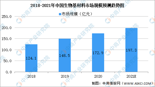 生物基材料是指用可再生原料通過生物轉(zhuǎn)化獲得生物高分子材料或單體,然后進(jìn)一步聚合形成的高分子材料。生物基材料包括生物基平臺化合物、生物塑料、功能糖產(chǎn)品、木塑復(fù)合材料等,它具有傳統(tǒng)高分子材料不具備的綠色、環(huán)境友好、原料可再生以及可生物降解的特性。數(shù)據(jù)顯示,2019年中國規(guī)模以上企業(yè)生物基材料營業(yè)收入為148.49億元,較2018年增加了24.38億元。據(jù)預(yù)測,2021年我國生物基行業(yè)規(guī)模以上企業(yè)營業(yè)收入可達(dá)197.3億元。