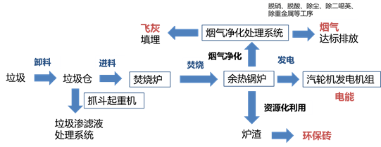 中國垃圾焚燒發(fā)電廠大多采用機械爐排爐焚燒垃圾,利用余熱鍋爐提高熱量利用率,根據(jù)余熱鍋爐蒸汽參數(shù)選擇汽輪機型號,同時配套煙氣凈化系統(tǒng),廠內(nèi)還會配有與機組配套的垃圾貯存庫(倉),垃圾滲濾液處理系統(tǒng)等。