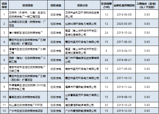 2021年6月15日,國家電網(wǎng)有限公司已將完成公示的2021年第十一批次可再生能源發(fā)電項目補貼項目清單上報國家主管部門,在此項目清單中,包含14個生物質(zhì)發(fā)電項目,其中垃圾焚燒發(fā)電項目有12個,康恒環(huán)境、瀚藍環(huán)境、圣元環(huán)保等多家企業(yè)的垃圾焚燒發(fā)電項目獲補貼。