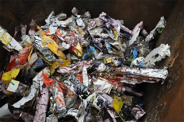 進入物化處理車間,一臺正在運轉的設備立刻吸引了我們的目光。“這是今年一月份剛建成投產的化工桶破碎生產線,一天的處理能力可以達到80噸?!必撠熑苏f道,“這臺設備是咱們本土企業(yè)鄭州潔普智能環(huán)保科技股份有限公司自主研發(fā)的GV系列工業(yè)危廢破碎機。你們看,化工桶被鏈板輸送機送入這臺破碎機后,經過剪切、擠壓、撕裂等作用,被破碎成200mm的小塊物料,這樣后續(xù)處置就非常方便了?!闭f罷,負責人又指了指電控柜的顯示屏繼續(xù)道,“看到這些實時變化的數據了嗎?挖掘和分析這些數據,可以幫助我們改進工藝、提高效率。最厲害的是,通過手機端的APP也能實時監(jiān)測,特別方便!”