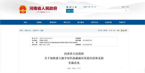 政府公告《關于加快建立健全綠色低碳循環(huán)發(fā)展經(jīng)濟體系的實施意見》