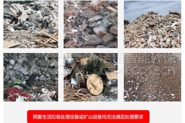 根據(jù)有關(guān)數(shù)據(jù)統(tǒng)計,我國每年產(chǎn)生35億建筑垃圾,未來十年仍以較快的速度增長,儲存量已超過200億噸占地面積約5億平方米,資源化利用不到10%。相對建筑垃圾的成分也比較復(fù)雜不規(guī)律,并且含有金屬、木材、紡織品、塑料等。甚至有的建筑垃圾里面有十幾種不同的物料。根據(jù)我國南北氣候及降水量不同, 建筑垃圾含水量,含泥量都有所不同;有些新建城市,每年建筑垃圾量大,有些城市建設(shè)高峰已過,存量建筑垃圾量大,原料差異明顯。所以處置工藝設(shè)備也有所不同。根據(jù)拆除垃圾、裝修垃圾、大件垃圾潔普智能環(huán)保推出三位一體聯(lián)合處置工藝。