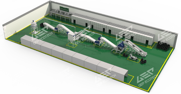 該系統(tǒng)將抽取過鋼絲的廢舊輪胎送入特制的雙軸輪胎撕碎機內(nèi)破碎,再依次經(jīng)過鋼絲分離機、磁選機、造粒機和纖維分離機的分選,最終得到較為純凈的膠粒。