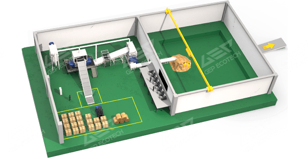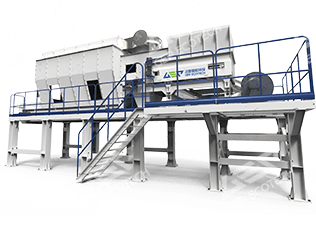 該系統(tǒng)由入料鏈板機、雙軸生物質(zhì)撕碎機、出料皮帶機、磁選機組成,工藝簡單,處理量大。